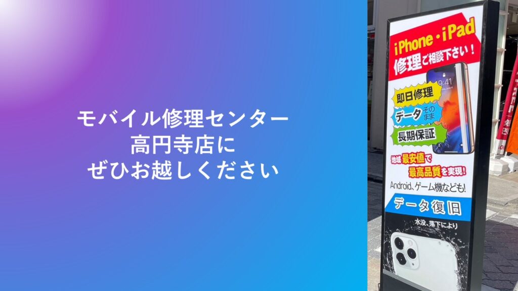 iPhone、iPad、Android、ゲーム機修理はモバイル修理センター高円寺店にお任せください!