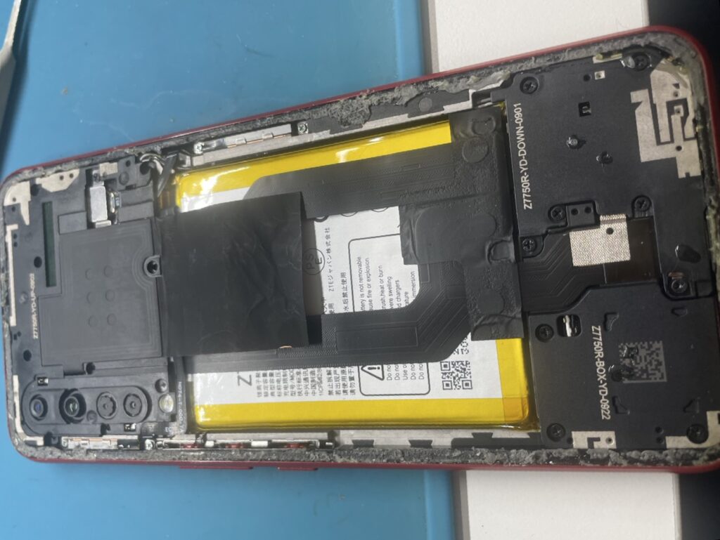 分解し点検。バッテリー交換にてデータもそのまま、無事改善! 発売から6年目、修理相談も多い端末です。