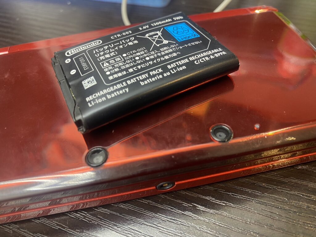 写真は3DSのバッテリー膨張……、裏蓋が膨らんでいました。