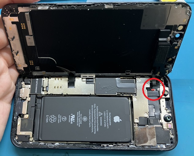 お写真はインカメラフレキが切れてしまった場面となります。